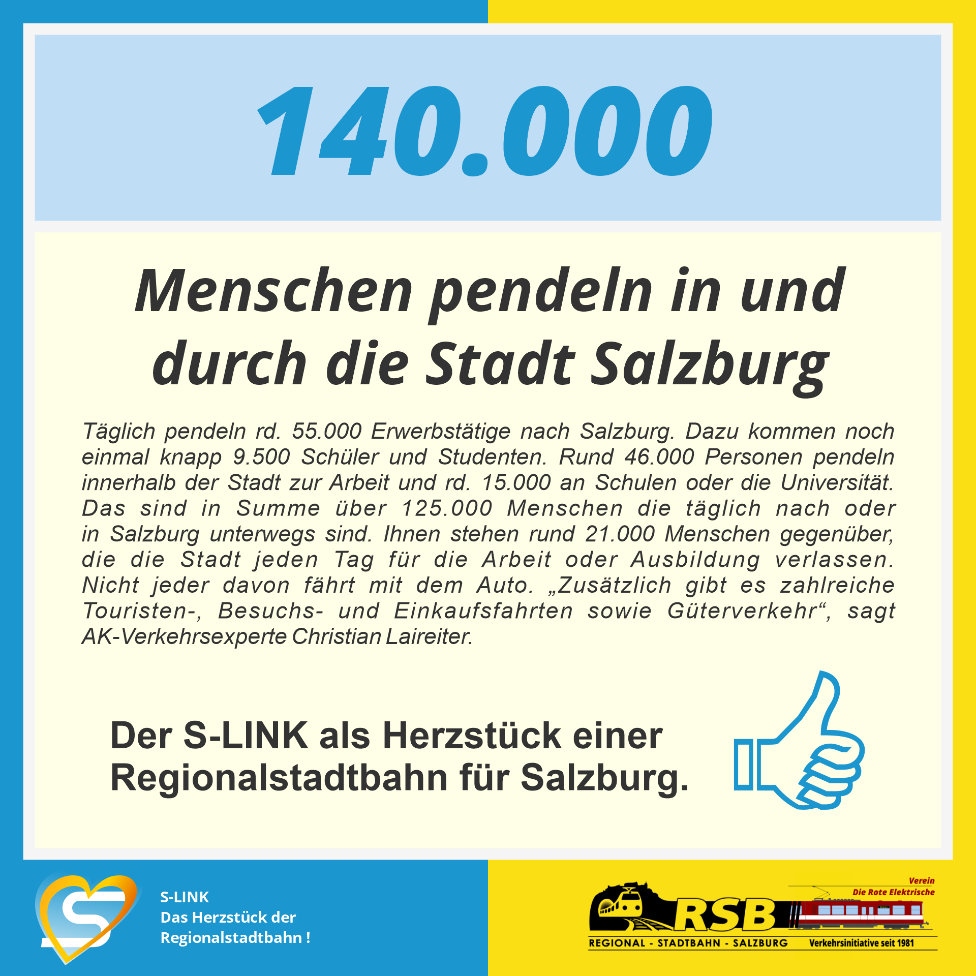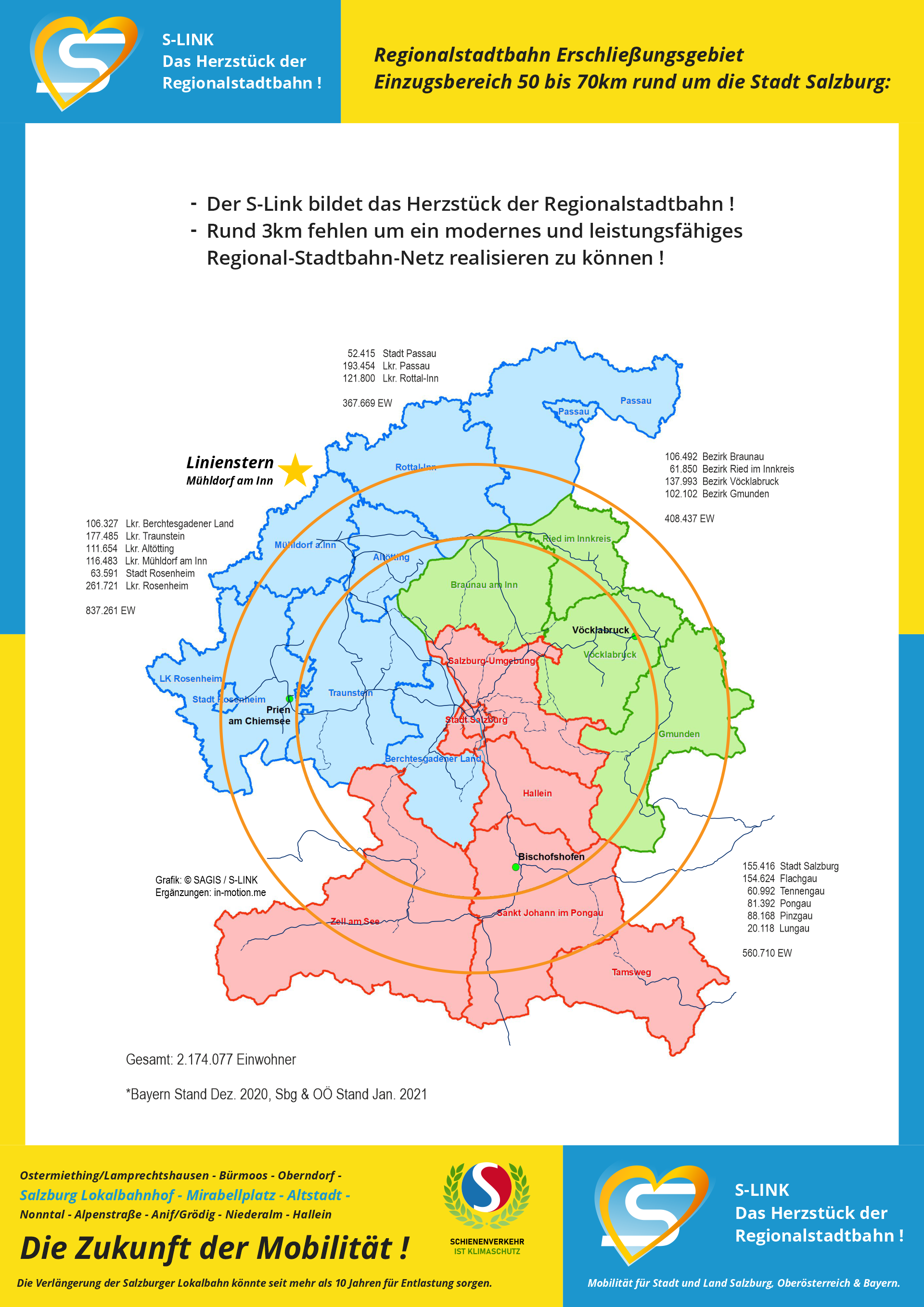 KFZ-Kilometer einsparen pro Jahr ! Mit dem S-LINK "nur" bis Mirabell.